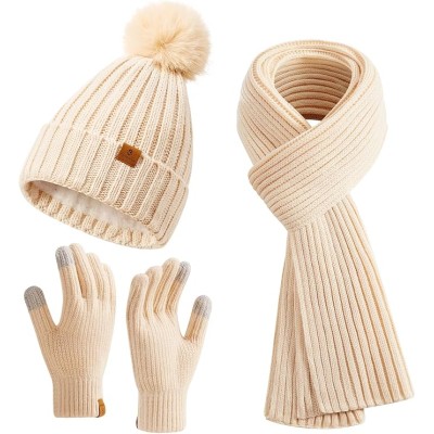 Coolprince Womens Long Scarf Gloves and Hat Set Cold Weather Hat Scarf Glove Set for Women Winter Beanie Hats with Pom Pom